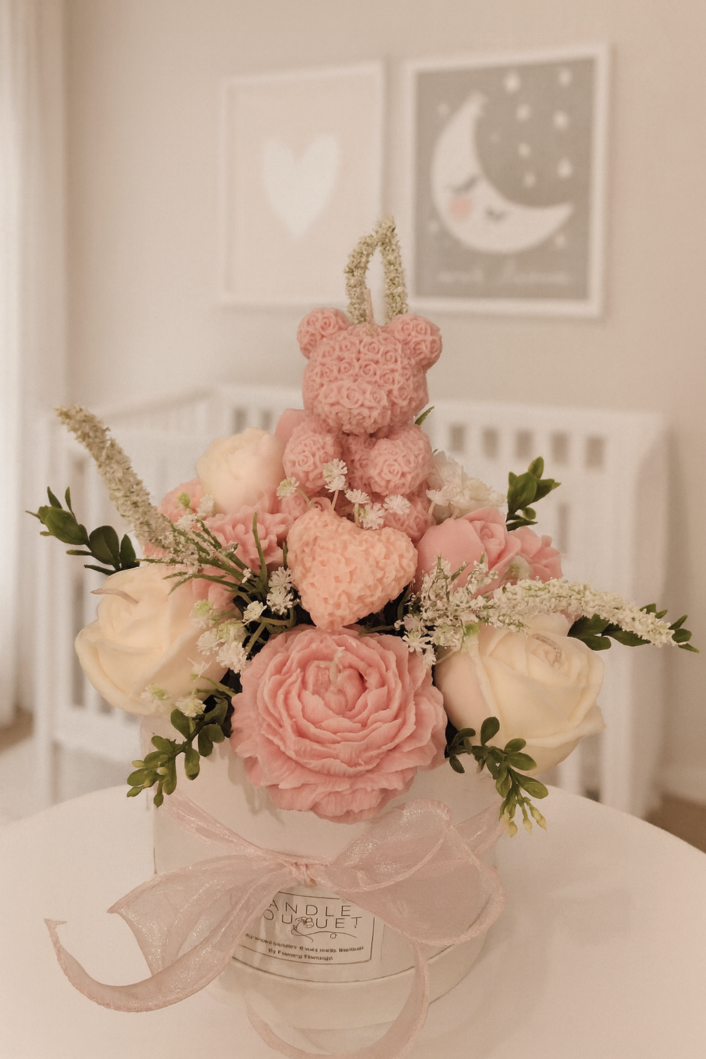 TEDDY CANDLE BOUQUET in pink & blue
