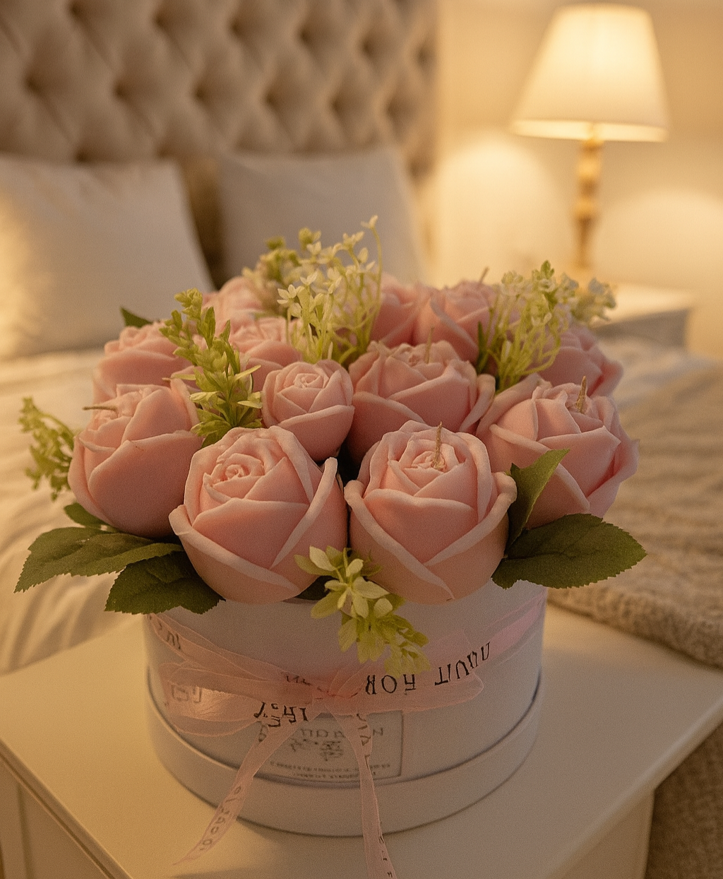 Housed in a stylish container and tied with a satin ribbon, this bouquet is perfect for gifting, décor, or simply treating yourself to something truly special.