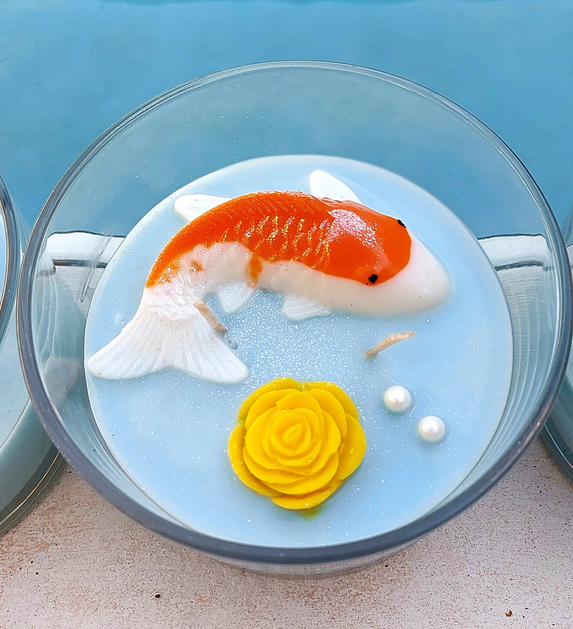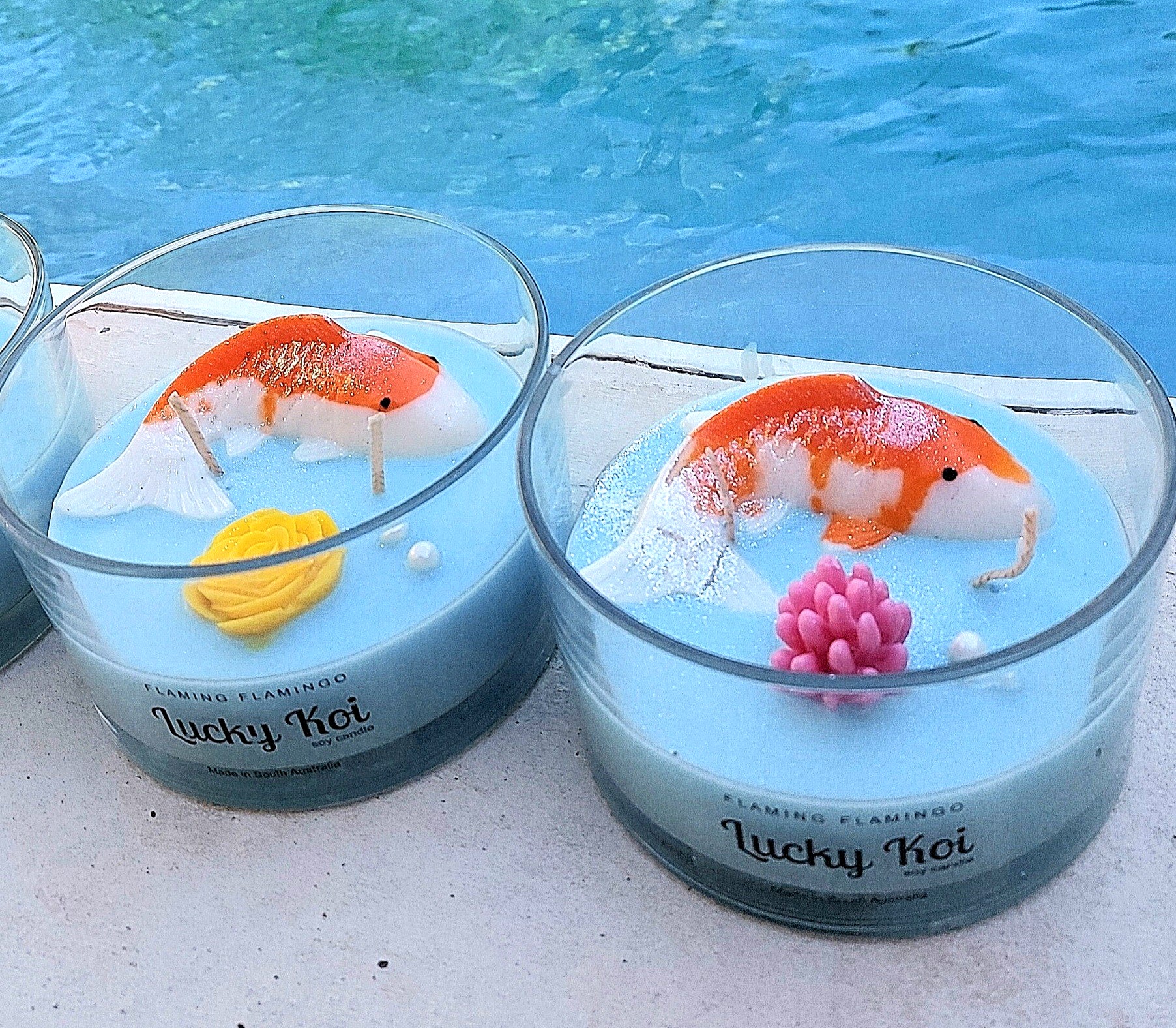 Our lucky koi candles are absolutely adorable, hand poured and meticulously detailed,  and smell like heaven.